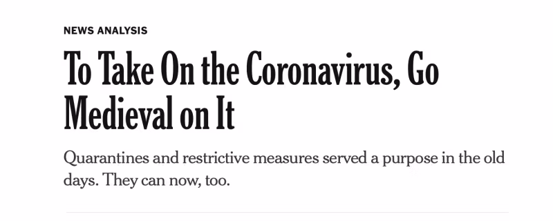 შესაბამისად, აი, რა დაწერა მაკნილმა 28 წლის 2020 თებერვალს, Covid-19-ად მიჩნეული ეპიზოდის დასაწყისში: „კორონავირუსთან საბრძოლველად, შუა საუკუნეების გზაზე:” “კარანტინებსა და შემზღუდველ ზომებს ძველად თავისი დანიშნულება ჰქონდა. ახლაც შეუძლიათ ამის გაკეთება.".